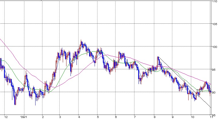 今考えられる仕掛けは、10/7安値下88円割れ売りと、