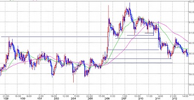天井となって高値保ち合い後、行って来いで91.80円どころの保ち合いに