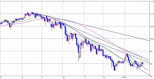 10/21寄り-1/7寄り 下降トレンドライン 維持