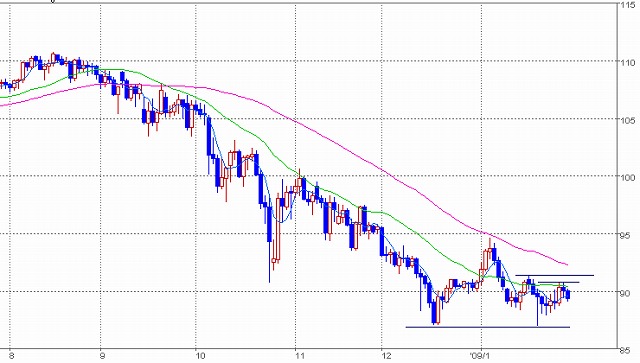 90円を越えて、もともとのストップまで10ティック届かず反落。